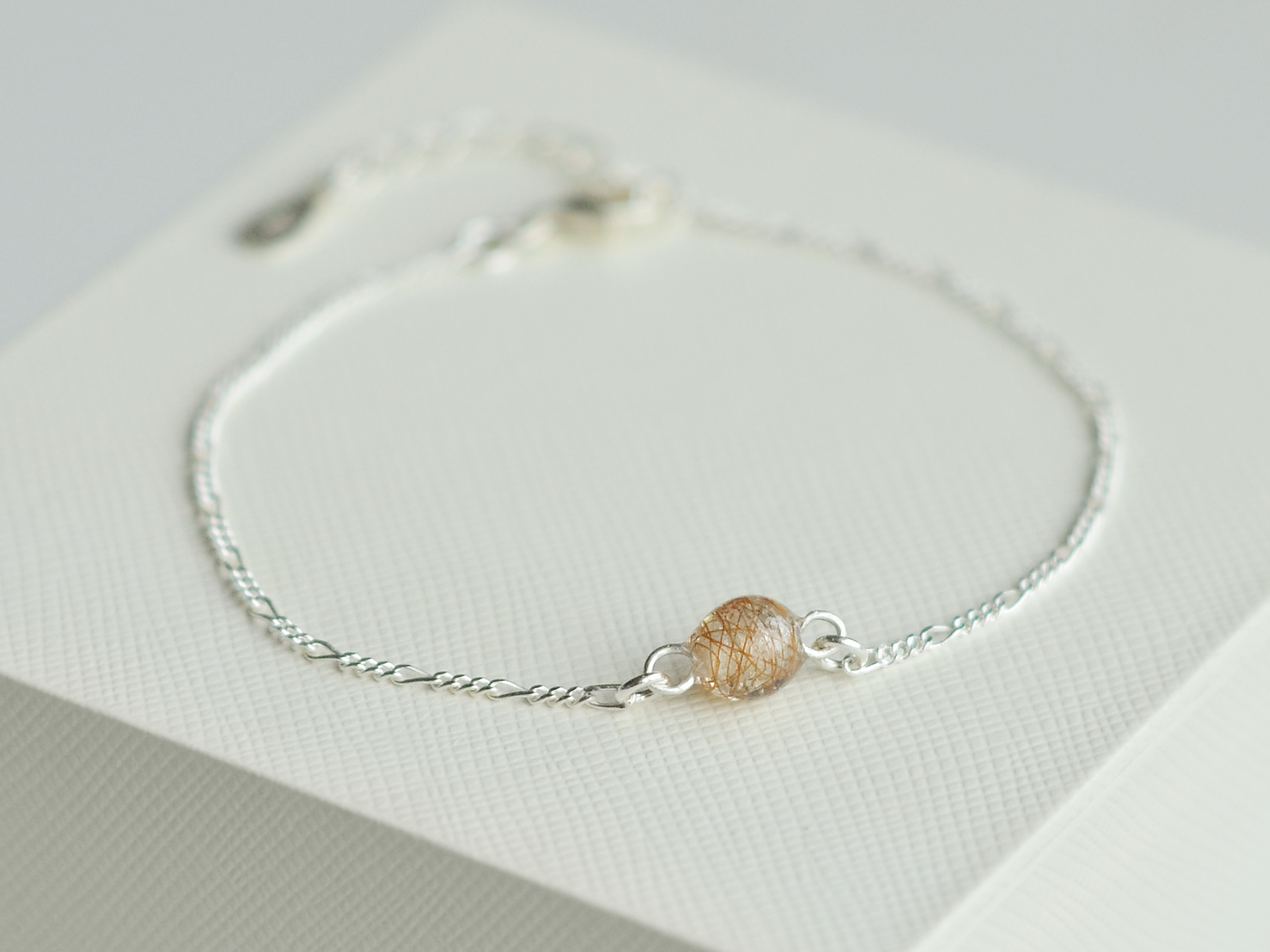 Lærke-armbåndet er lavet med en elegant figaro-kæde og en enkelt håndlavet resin perle, der indkapsler et strå af din hests hår. Der findes et matchende halskæde.