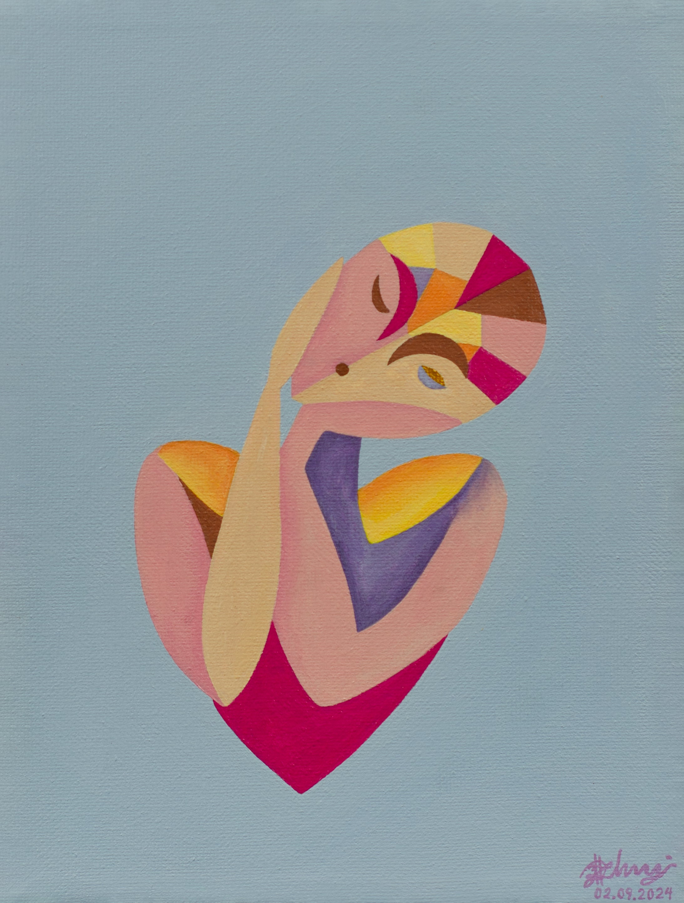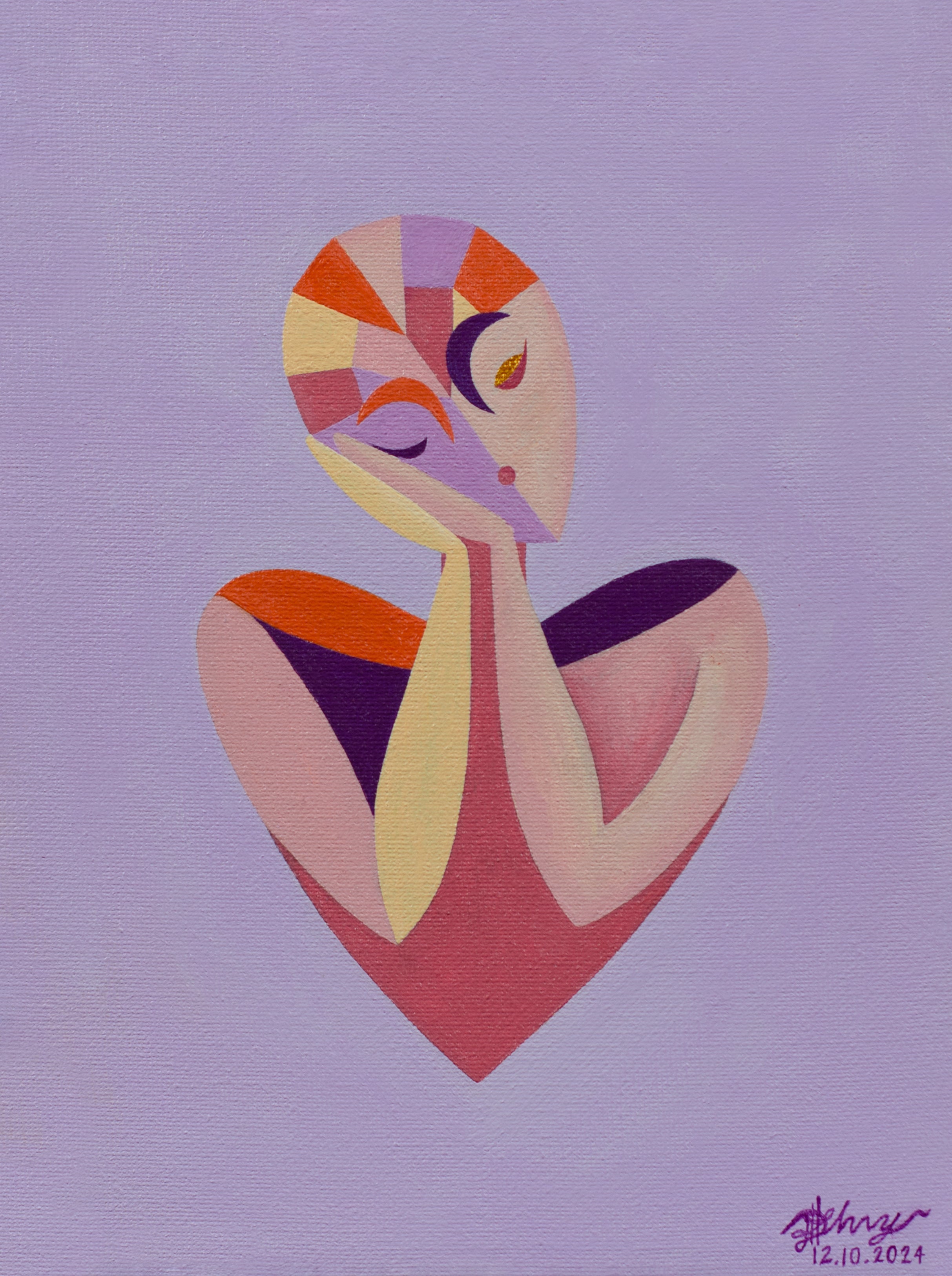 The Heart Beings collection features 9 original artworks celebrating self-love through heart-shaped figures embracing themselves. Each piece explores the beautiful complexity of the human mind with varied colors and forms, showing how we can all be wonderfully unique yet deeply connected.