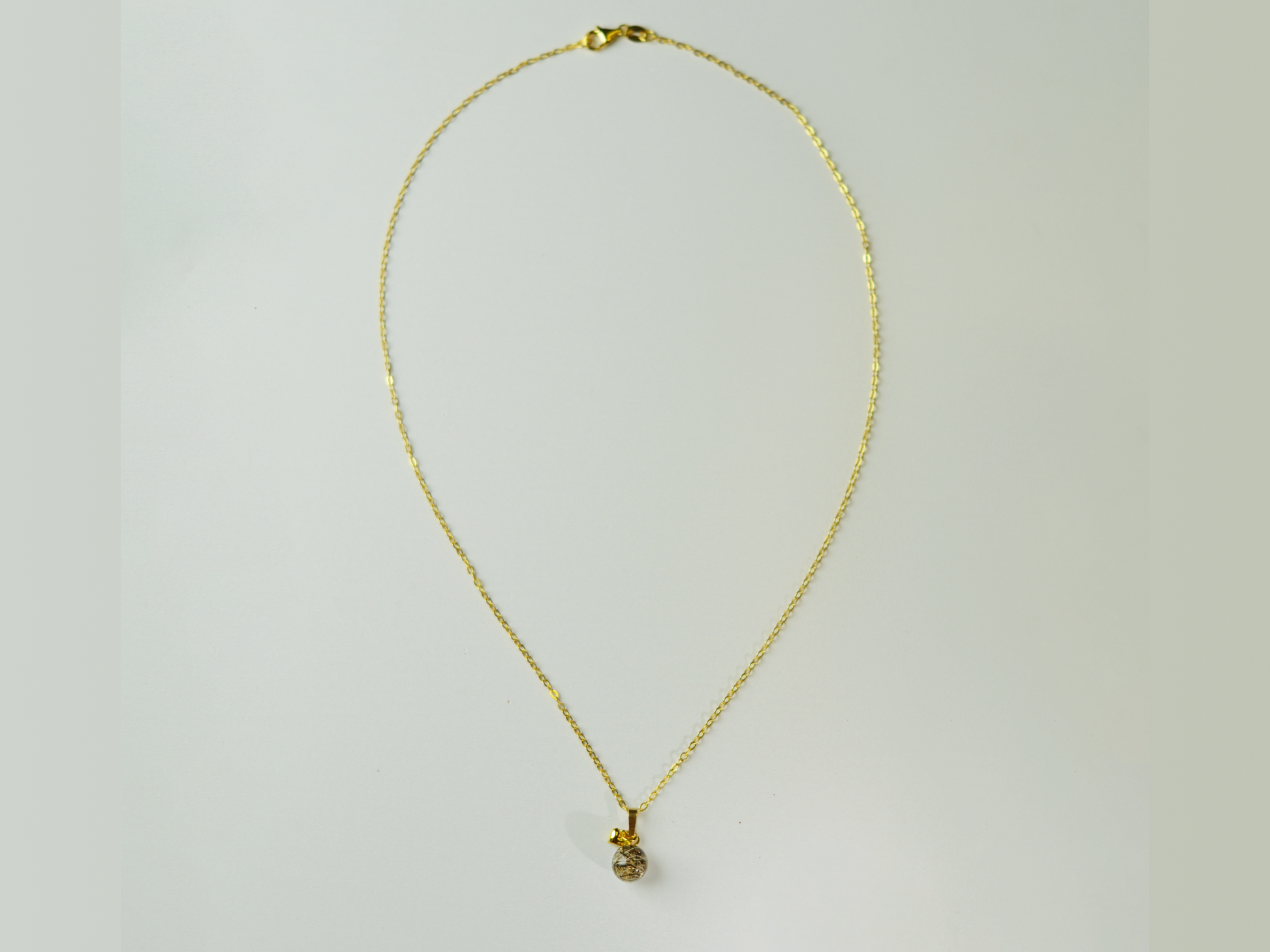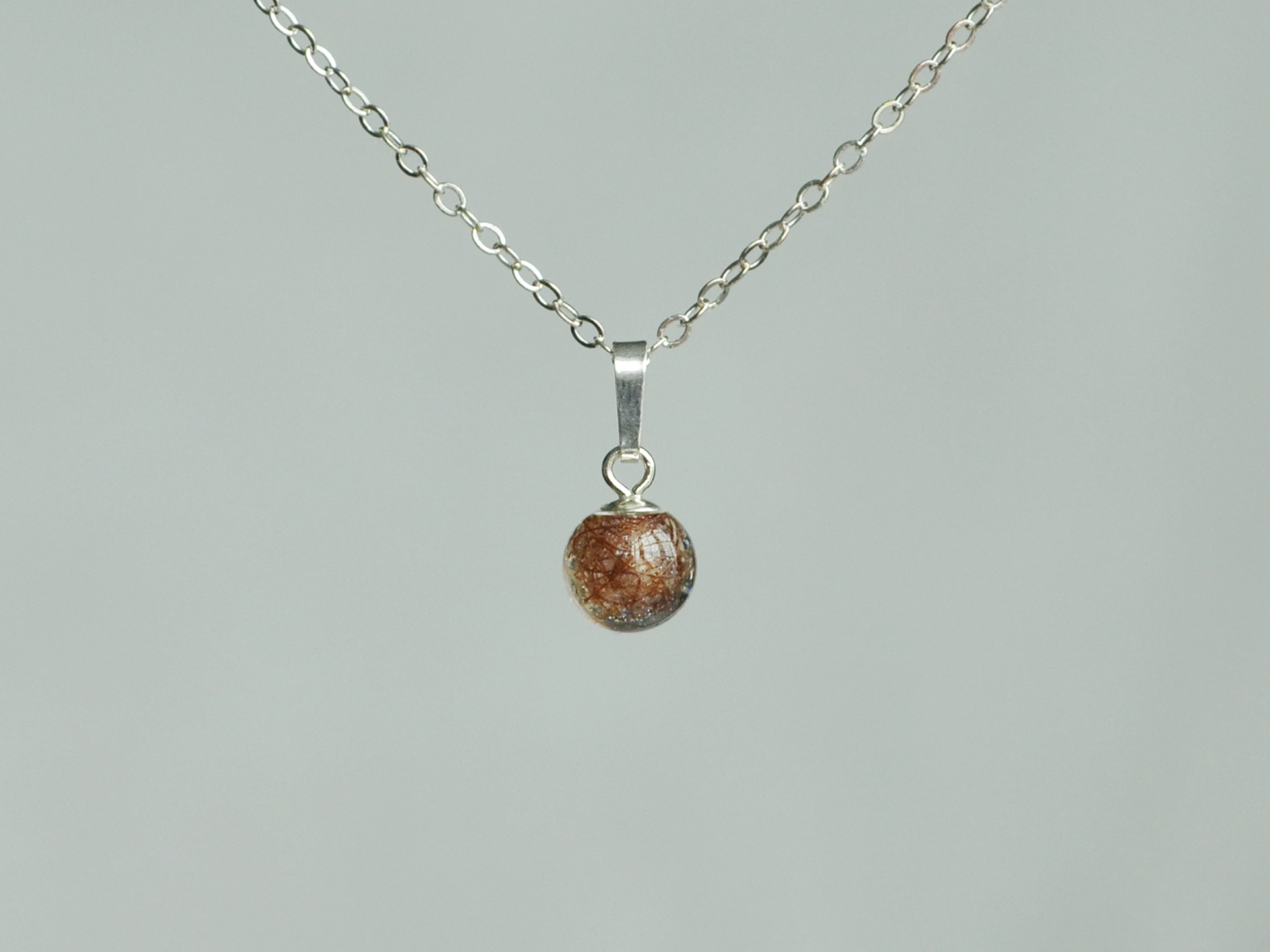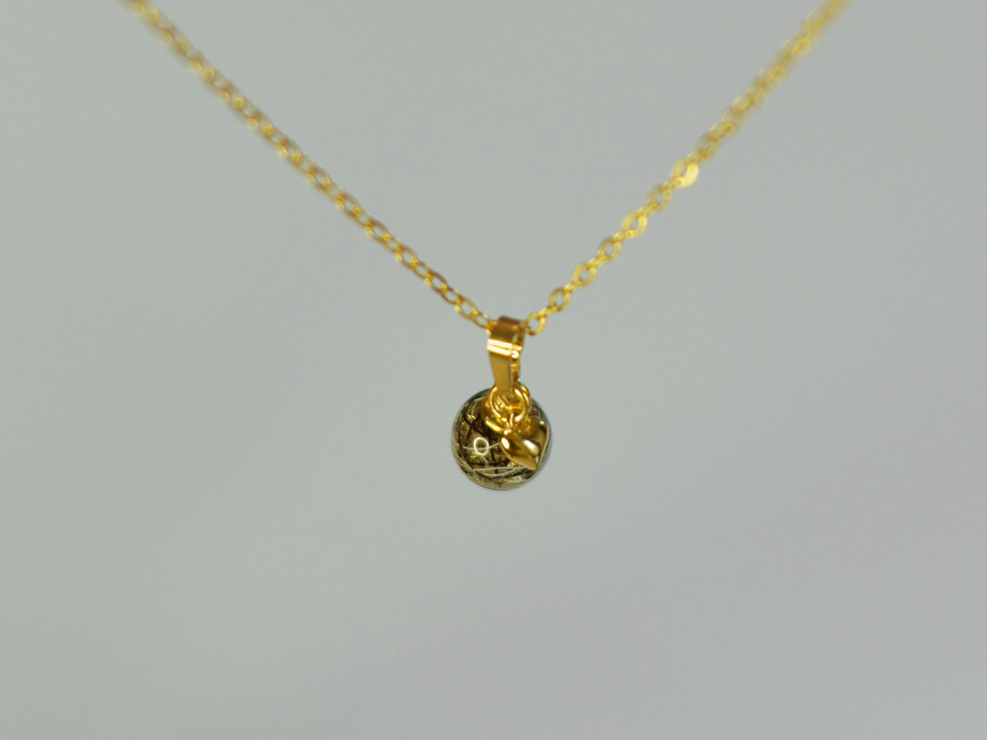 The Emma-Rosa Necklace is made with a classic cable link chain and a single handmade bead with resin and horsehair. This necklace also comes with a mini heart.